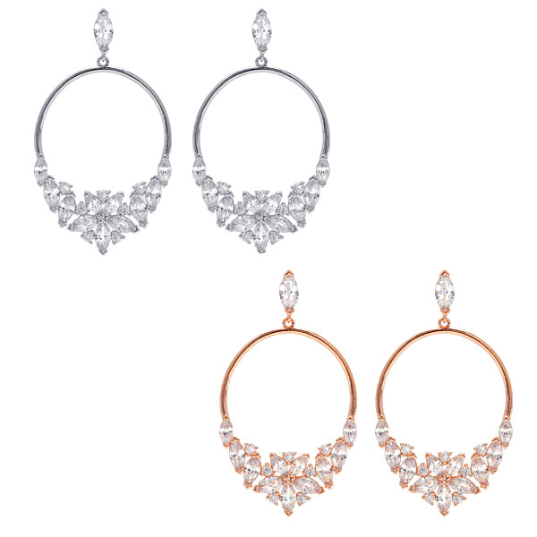 큐빅지르코니아 꽃망울 반원 귀걸이