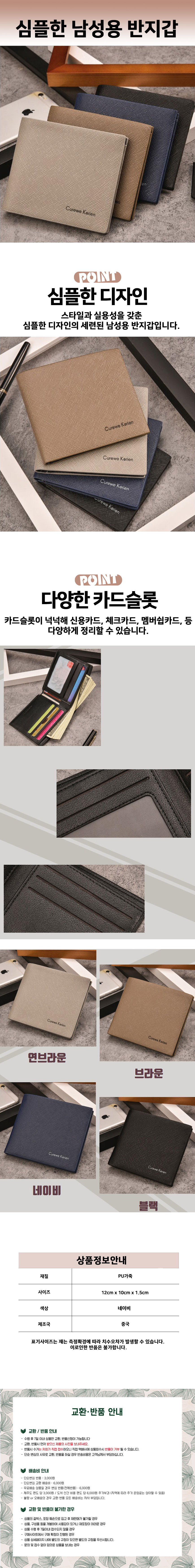 소프트 슬림 심플한 수납많은 남성용 반지갑 블랙