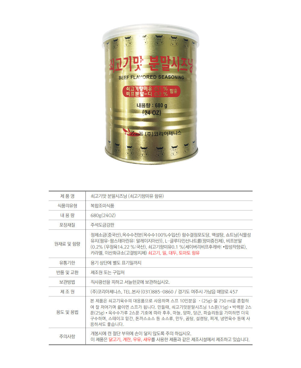 코리아제니스 쇠고기맛 분말시즈닝 680g X 24개