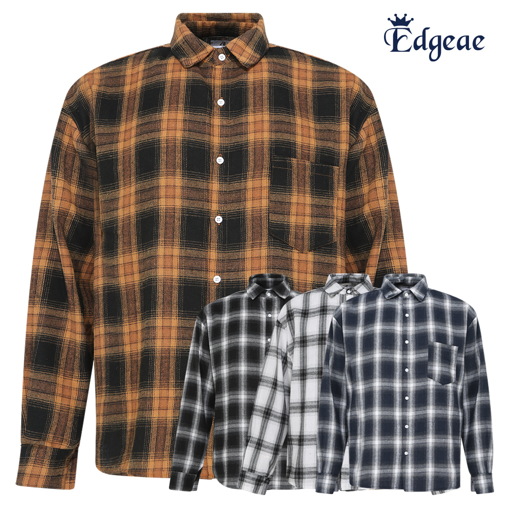 엣지애 남성 타탄체그 루즈핏 카라 긴팔셔츠 MCTS5RR5443