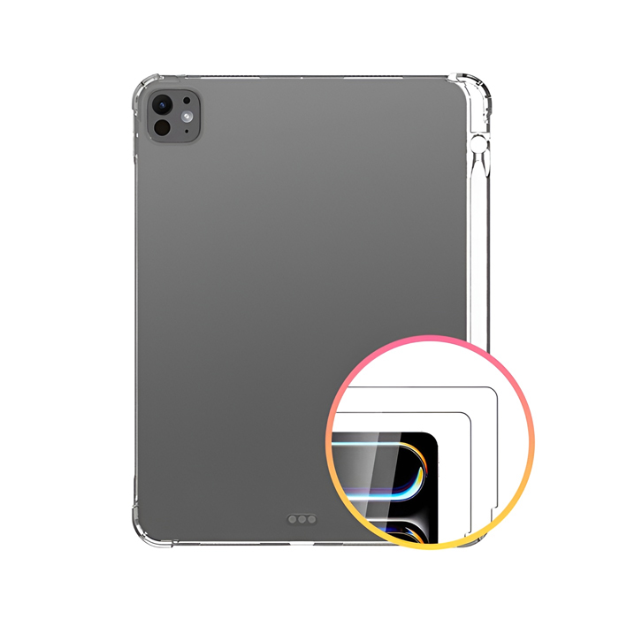 아이패드 A16 (2025) 펜슬수납 젤리 케이스+강화유리 2매 세트