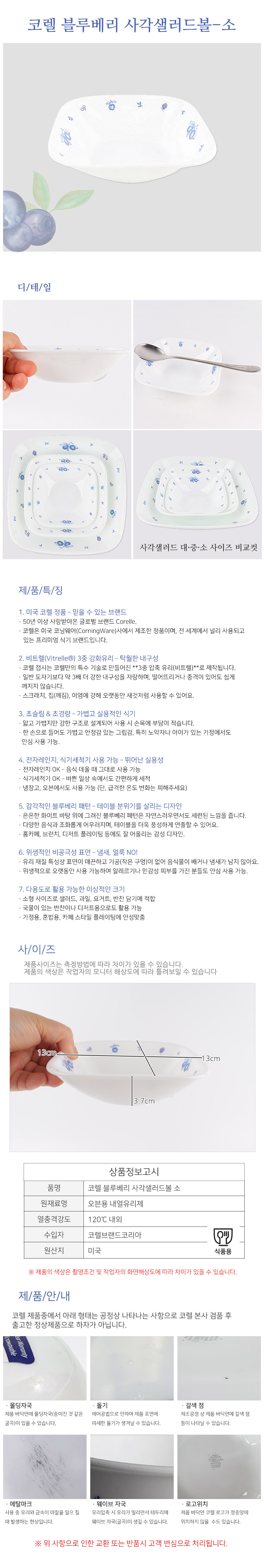 코렐 블루베리 사각샐러드볼 소 앞접시 디저트 시리얼