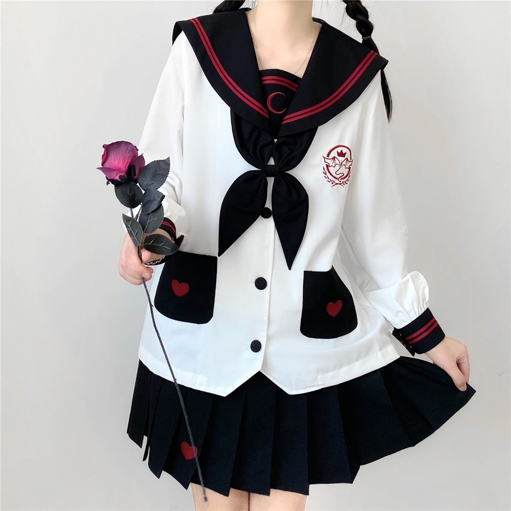 두줄라인 레드데빌 블랙 세라복 프레피룩 긴팔 교복.