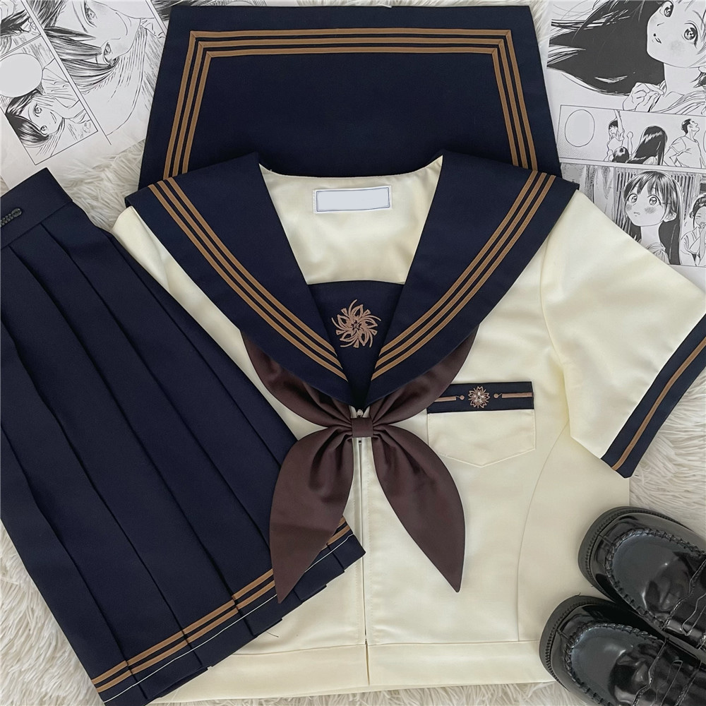 브라운세줄라인 네이비 세라복 프레피룩 반팔 교복.