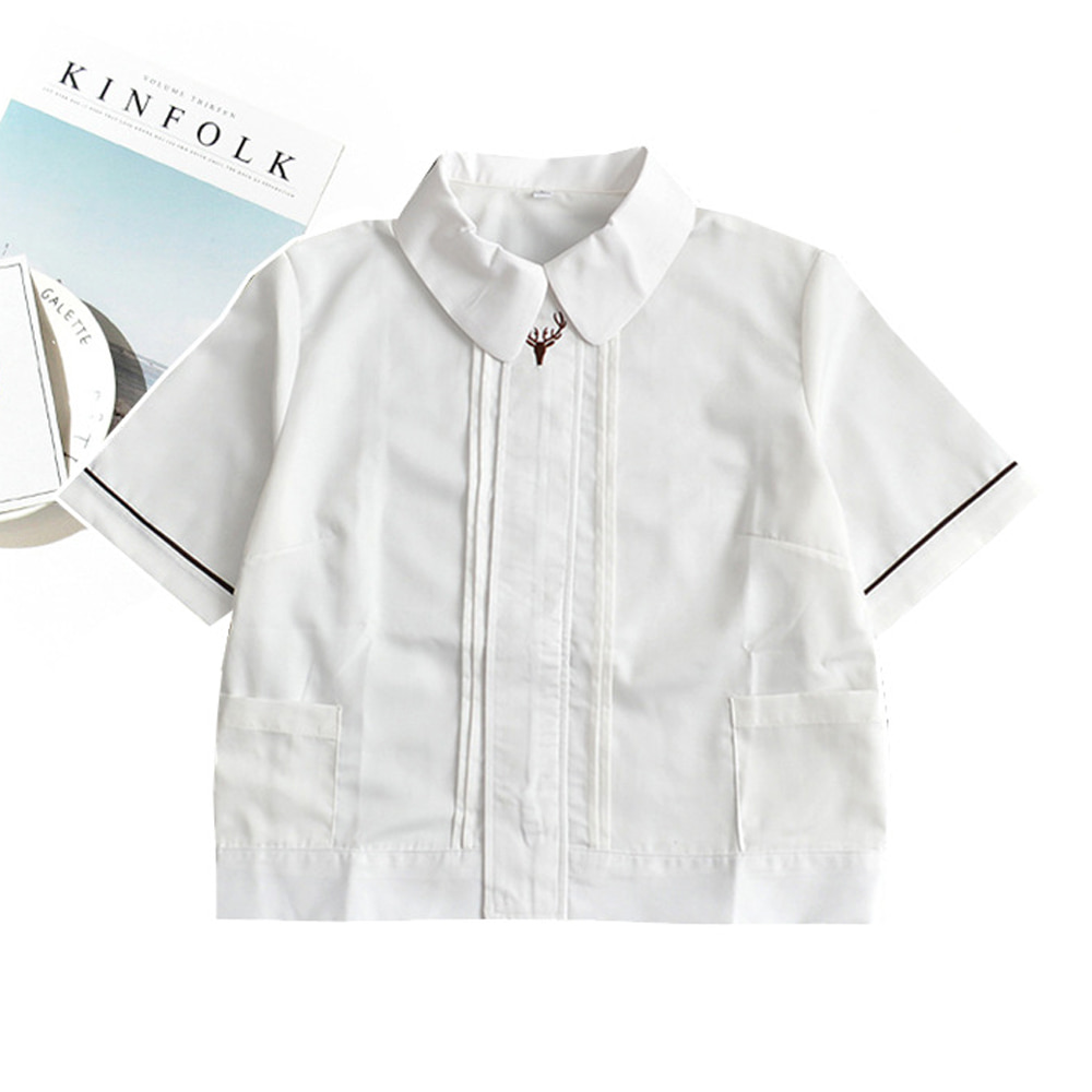 (대여) 화이트 사슴자수 지퍼형 이중여밈 여자 반팔.