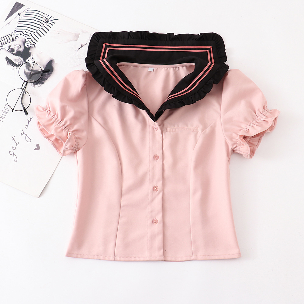 (대여) 핑크 마린 세라복 퍼프소매 여자 반팔 교복셔.