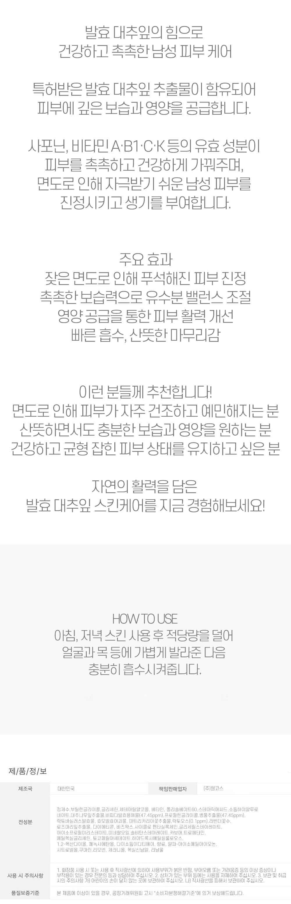발효 대추잎 힘으로 건강하고 촉촉 남성 에멀젼 150ml