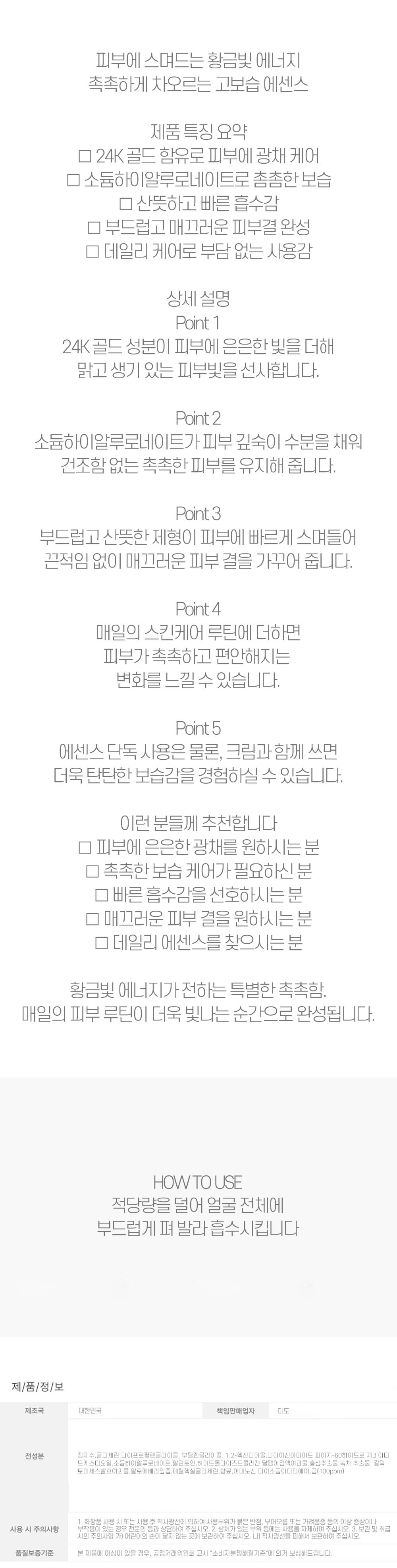 24K 골드 함유로 피부에 광채 케어 여성 에센스 100ml