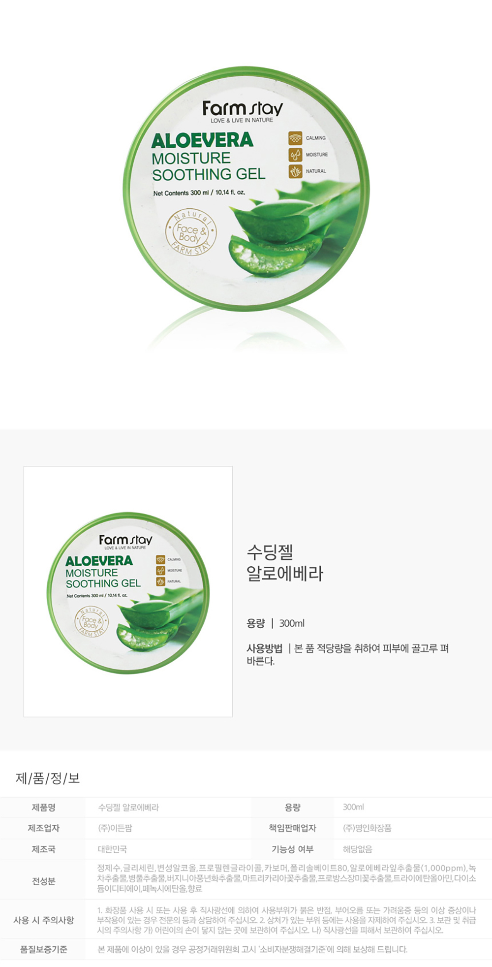 피부를 편안하게 수분 진정 케어 알로에 수딩젤 300ml