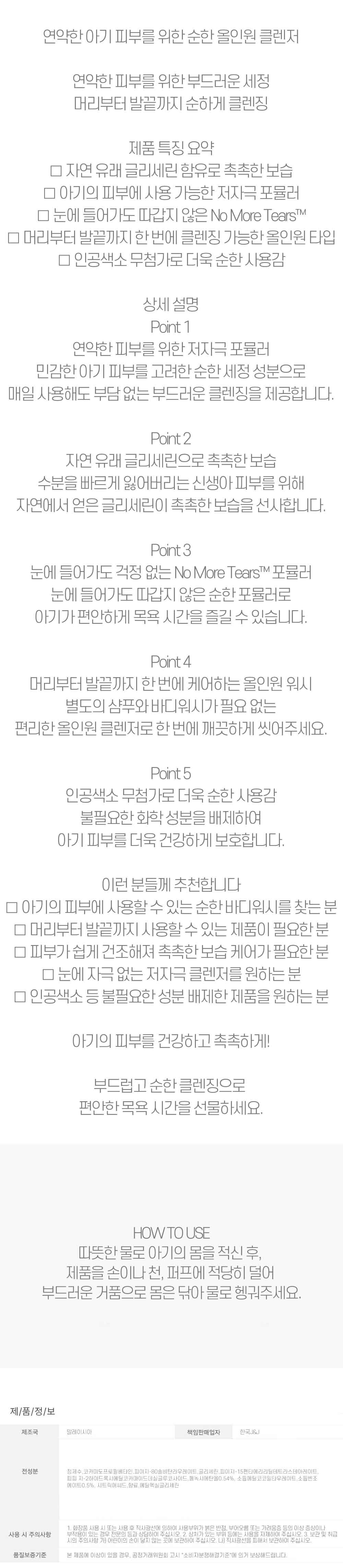 연약한 아기 피부 위한 순한 올인원 베이비바스 500ml
