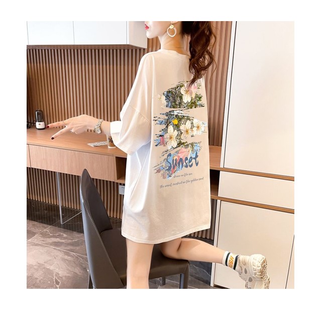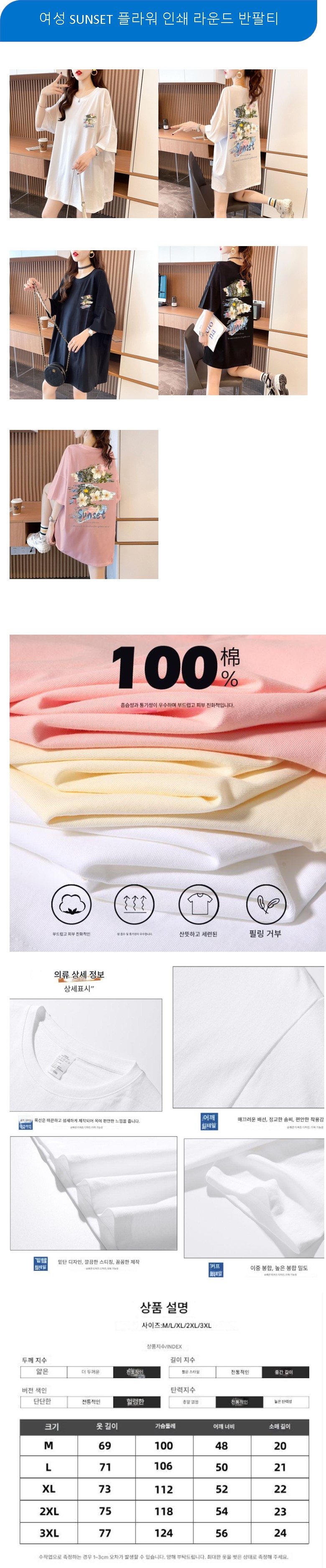 nega 여성 SUNSET 플라워 프린팅 라운드 반팔티