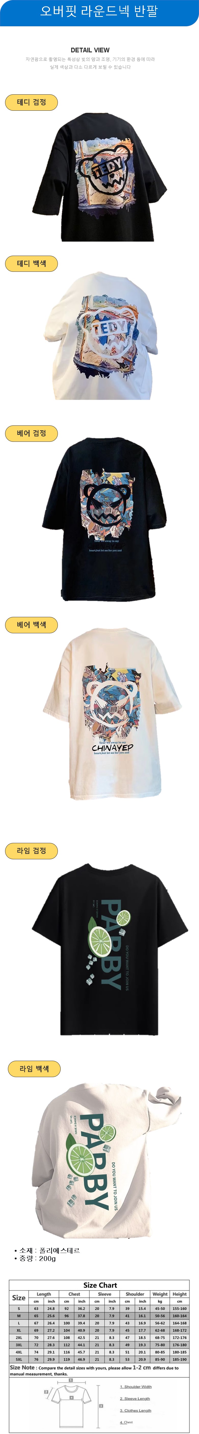 빅오버핏 라운드넥 반팔 곰 테디 라임