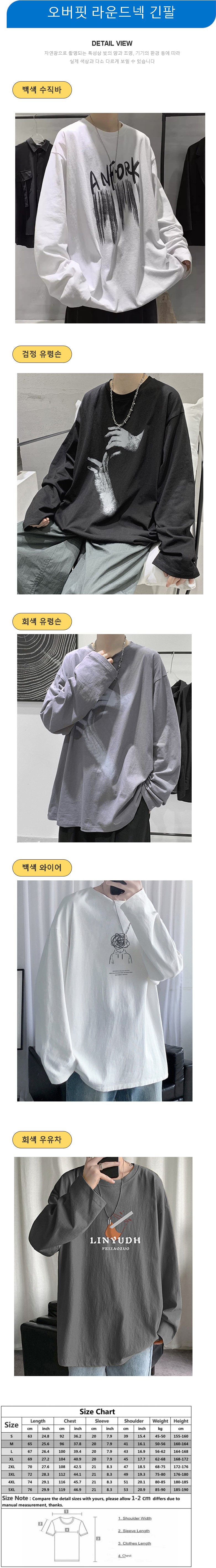 빅오버핏 라운드넥 긴팔 손 우유 와이어 수직바