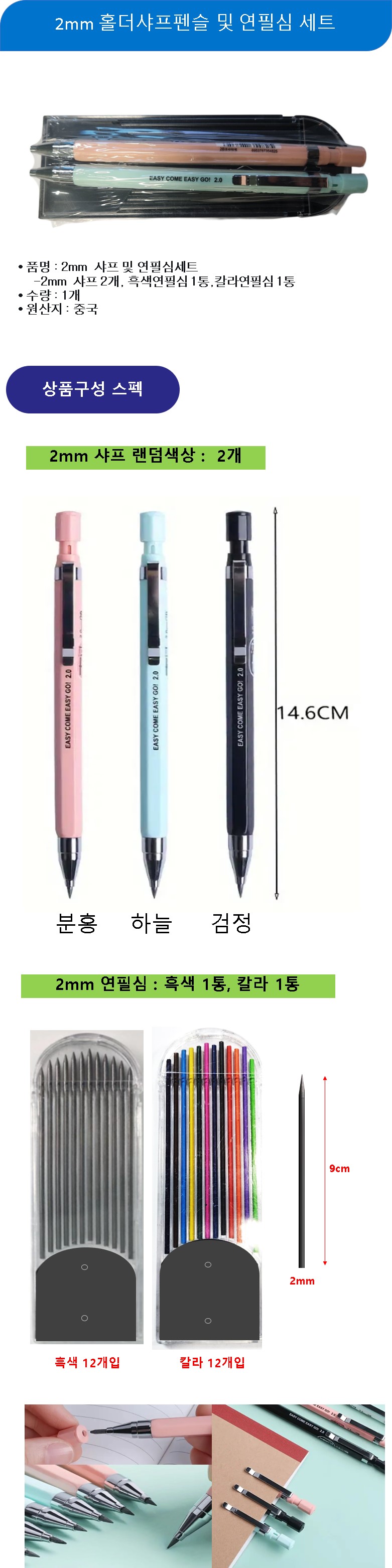 2mm 홀더샤프펜슬 및 연필심 세트 색상랜덤