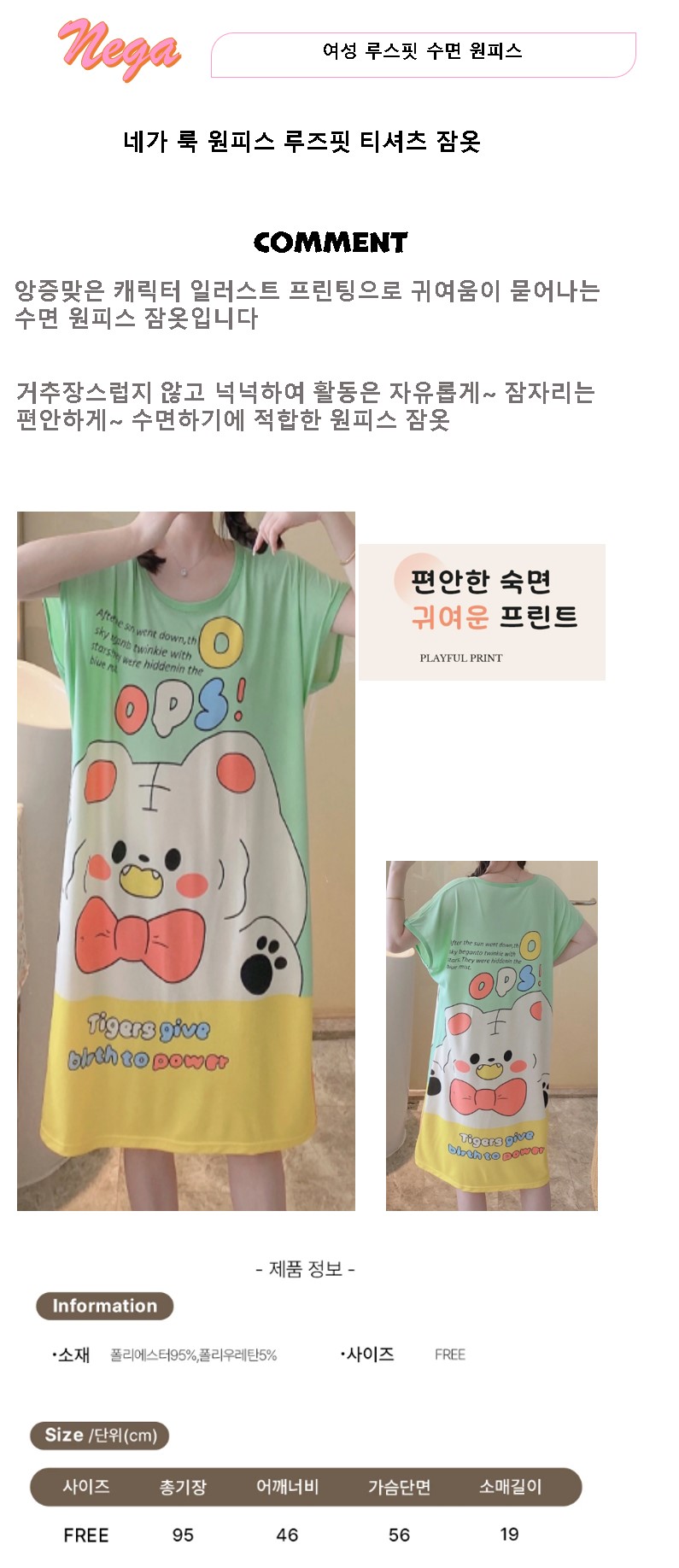 nega 여성 루스핏 흰곰돌이 수면 원피스