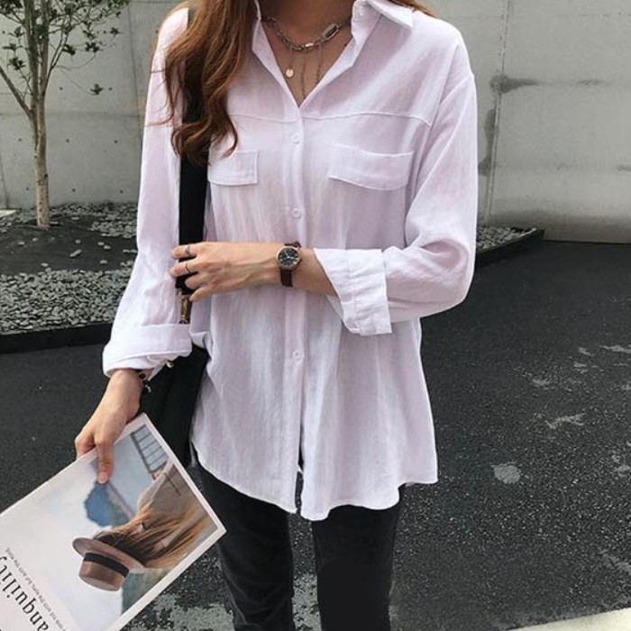 여성 카라 긴팔 블라우스 베이직하면서도 모던한 느낌