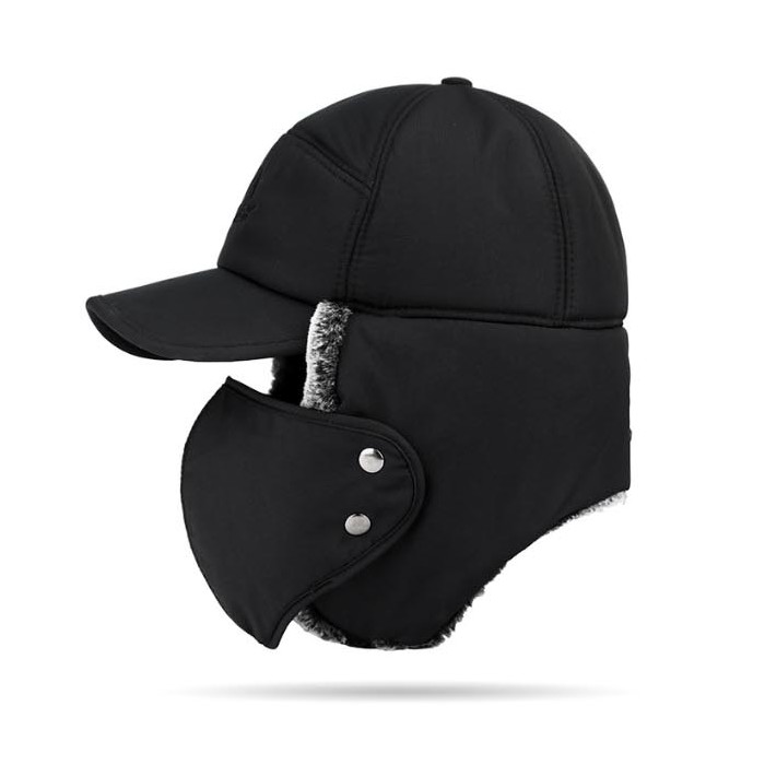 마스크 달린 등산벙거지 어르신 겨울모자 방한 귀마개