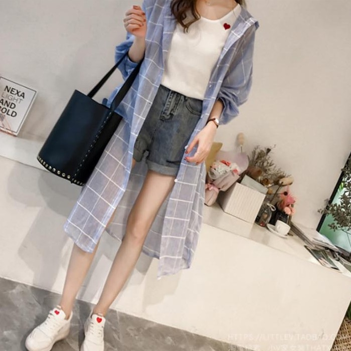 여자 캐주얼 코디 롱셔츠 후드 긴팔 바람막이 긴남방