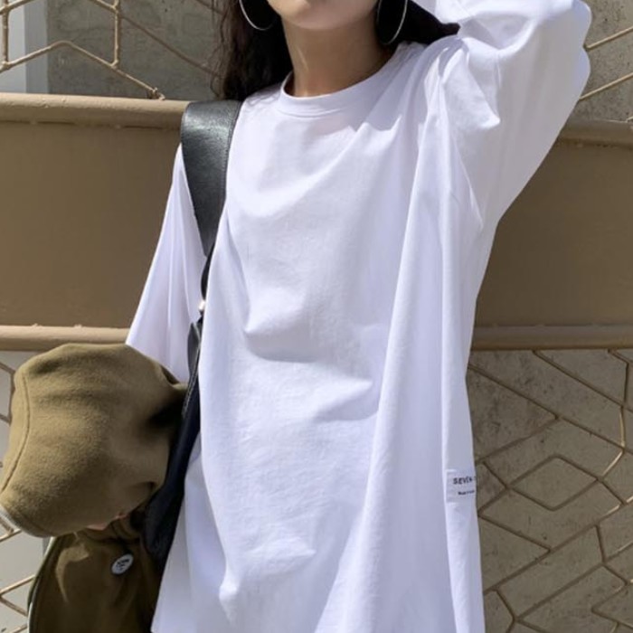 노멀한 무지 절개 티셔츠 라운드넥 긴팔티 여성