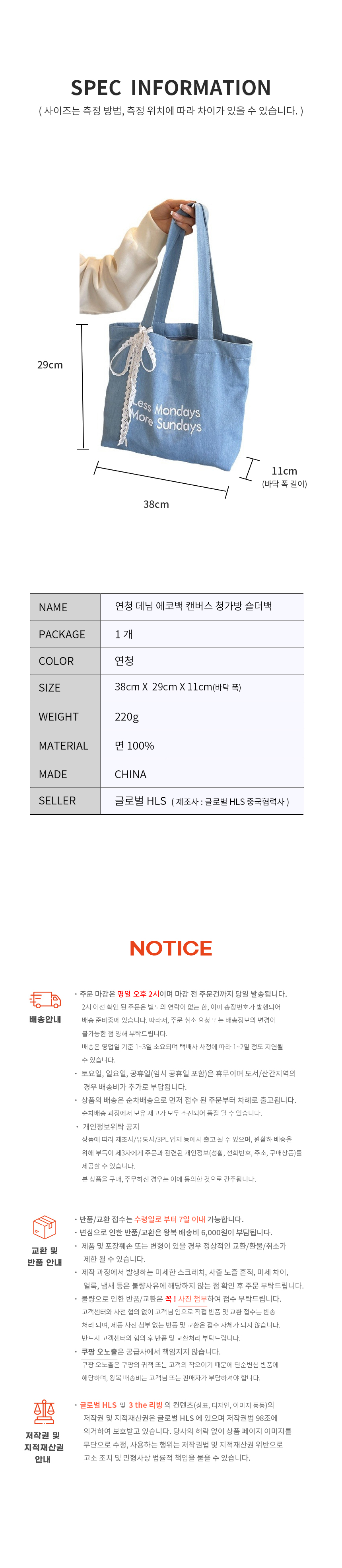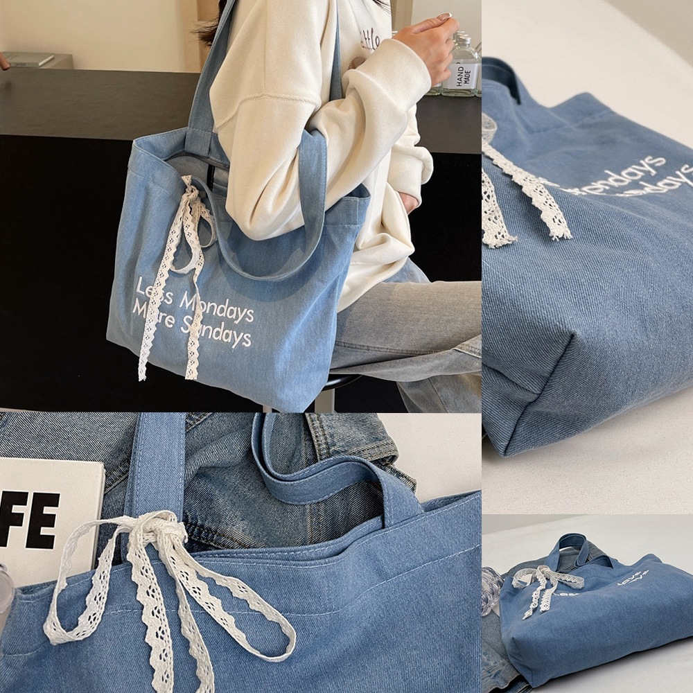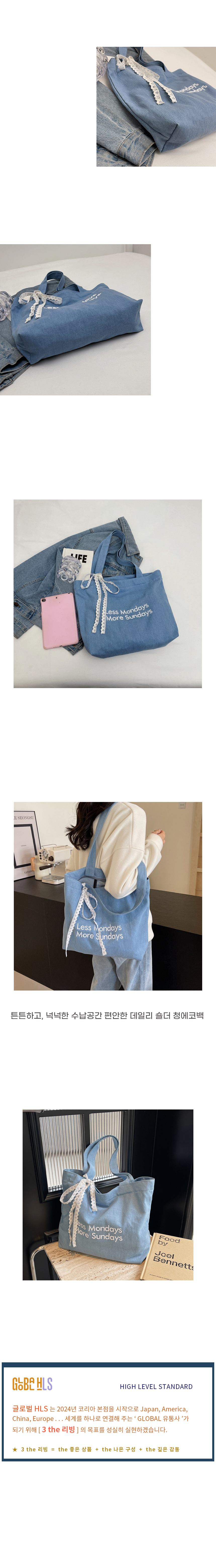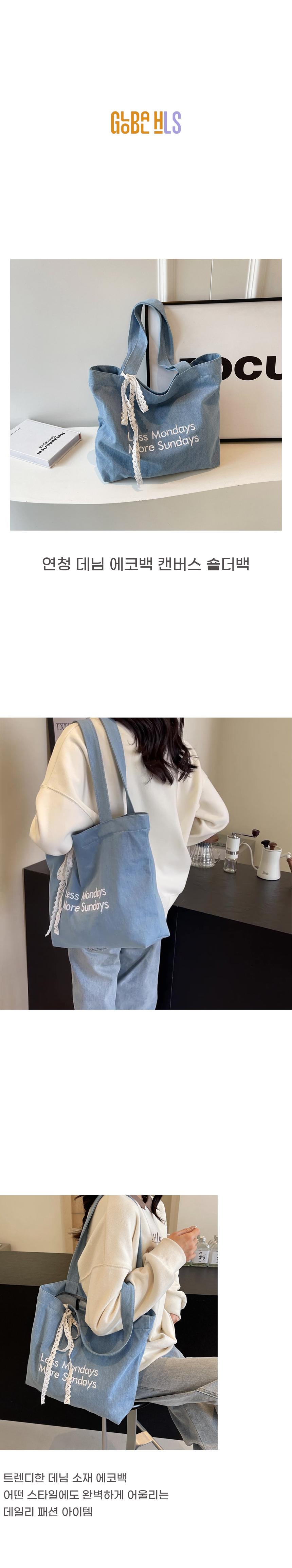 트렌디 연청 데님 숄더 에코 크로스 가방