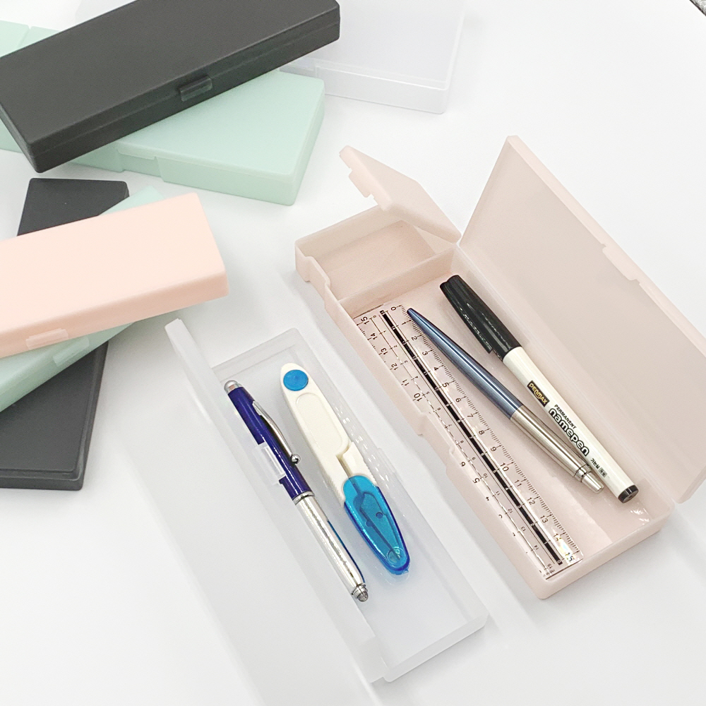 무지 반투명 사각 하드 필통 펜케이스