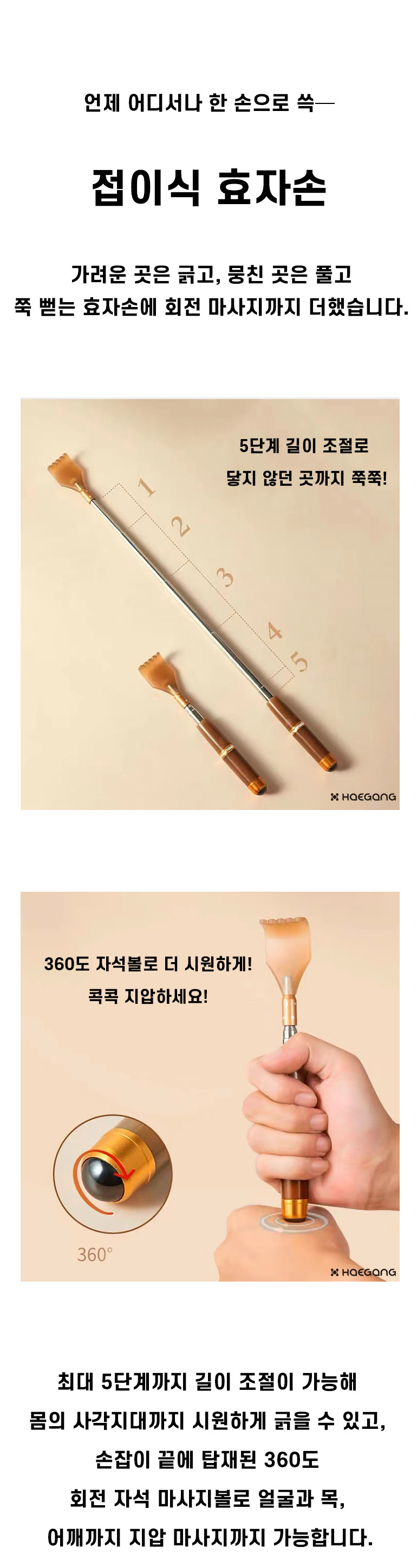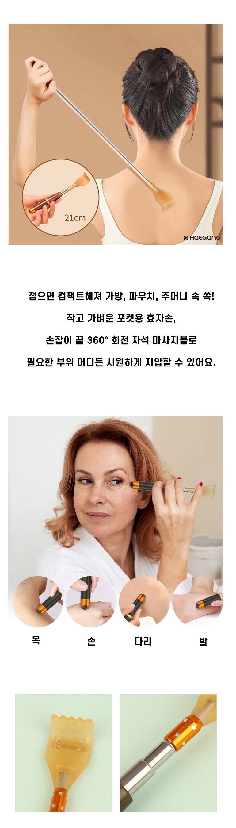 접이식 효자손 길이조절 자석 지압 마사지 등긁개 부모님 선물 휴대용 안테나 미니 지압봉
