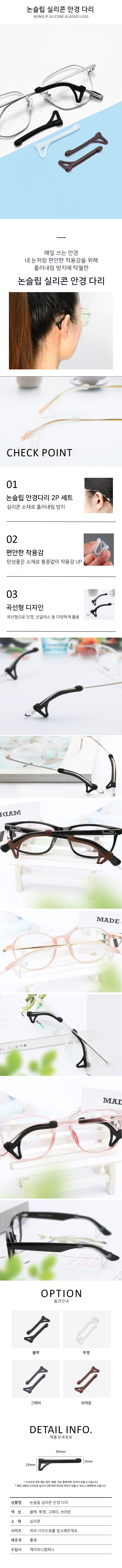 안경 귀아픔 방지 논슬립 다리 팁 1쌍 (2개)