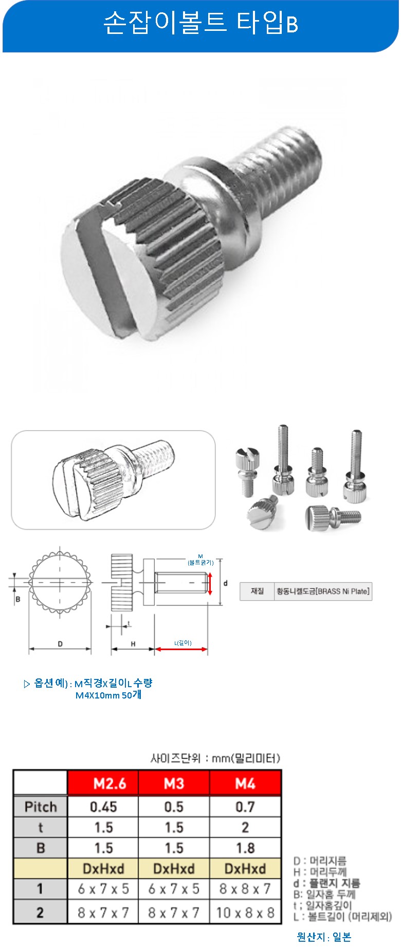 손잡이볼트B형 니켈도금 M2.6(6D7H)x4mm 50개
