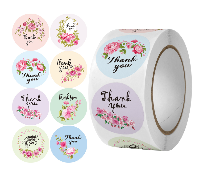 • 꽃모양 선물 답례 감사 인사 롤스티커 1롤 500매
