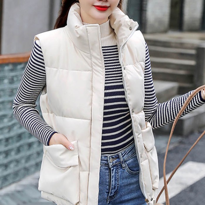 겨울 아우터 민소매 여성 패딩 반목 스타일