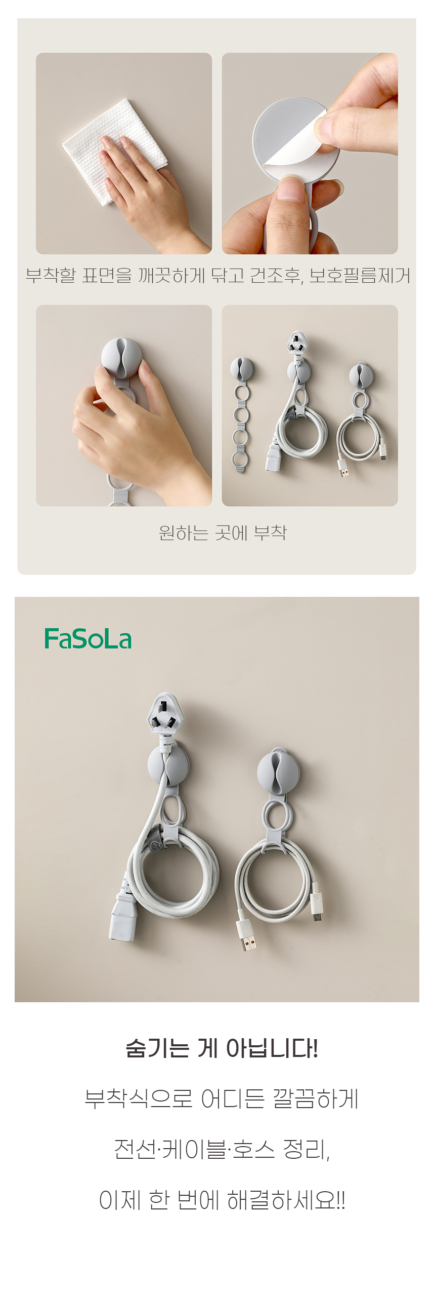부착식 전선정리 케이블수납홀더 공간절약
