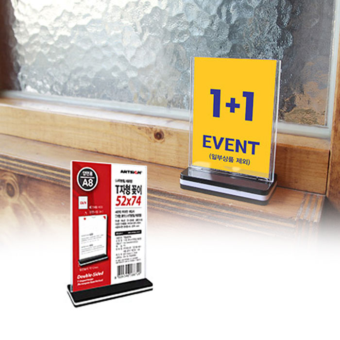 테이블 양면 쇼케이스 T자형 미니 아크릴꽂이 74x52