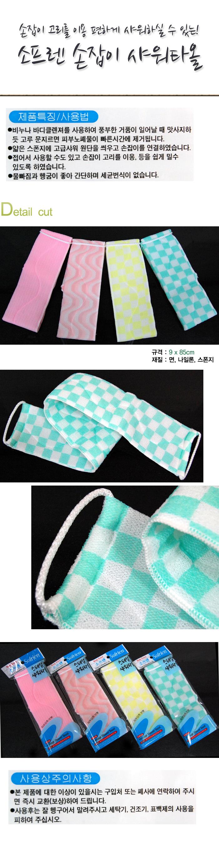 손잡이 샤워거품 타월 9x85cm x5개-색상랜덤발송