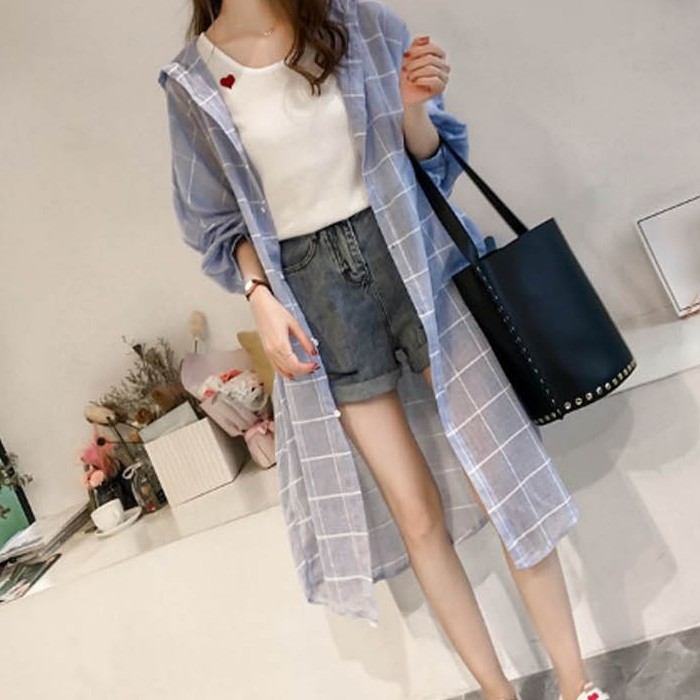 트렌디 후드 셔츠 체형커버 가능한 격자무늬 롱 가디건