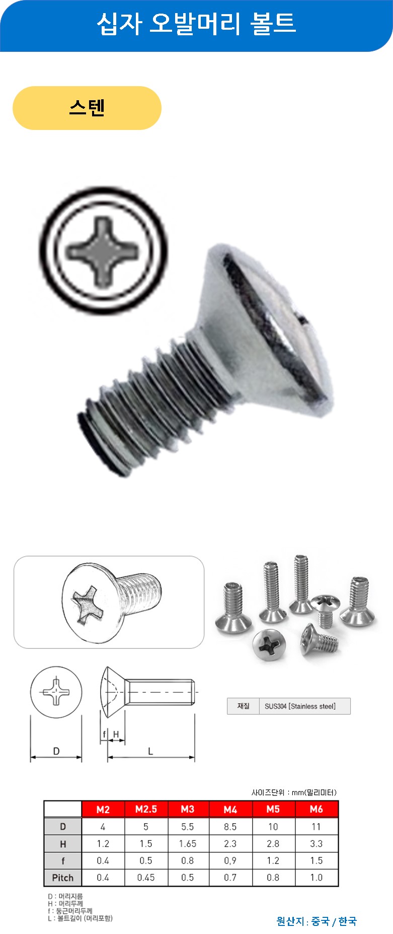 십자 오발머리 볼트 스텐 M4x25mm 1000개
