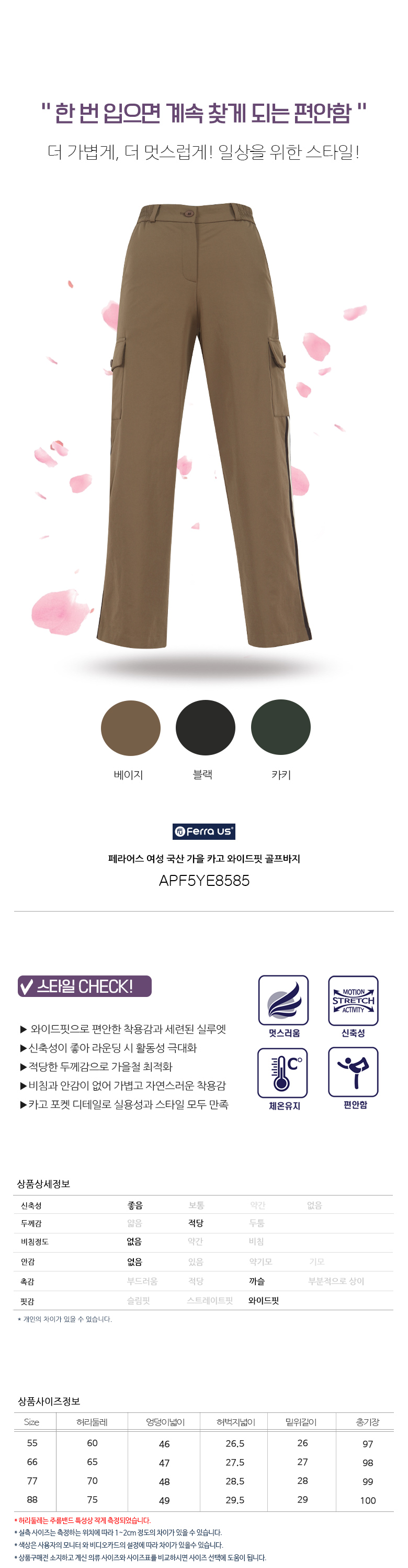 페라어스 여성 국산 가을 카고 와이드핏 골프바지 APF5YE8585