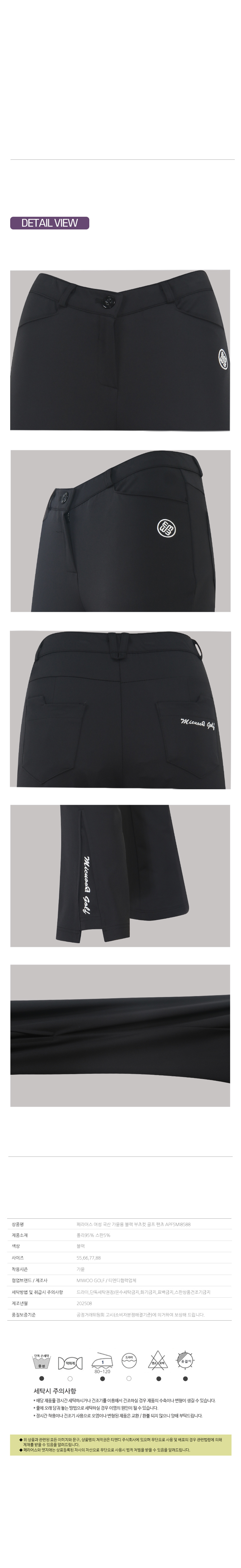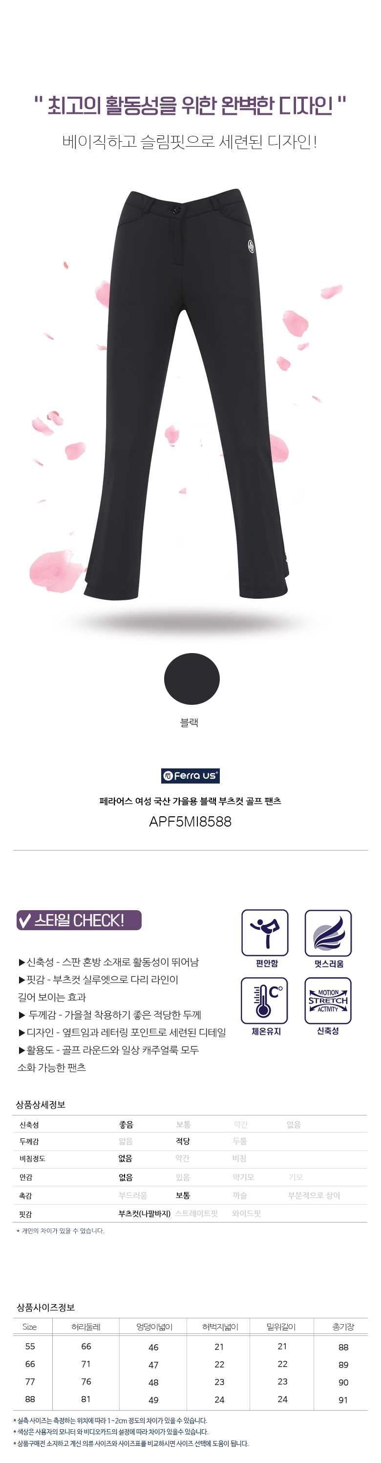 페라어스 여성 국산 가을용 블랙 부츠컷 골프 팬츠 APF5MI8588