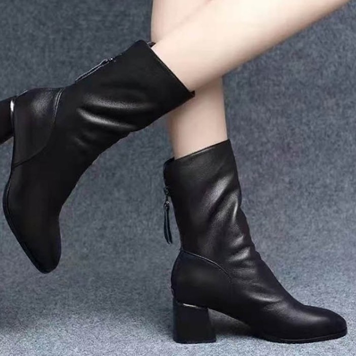 클래식한 여성 슈즈 뒷지퍼 중목 부츠 빈티지 신발