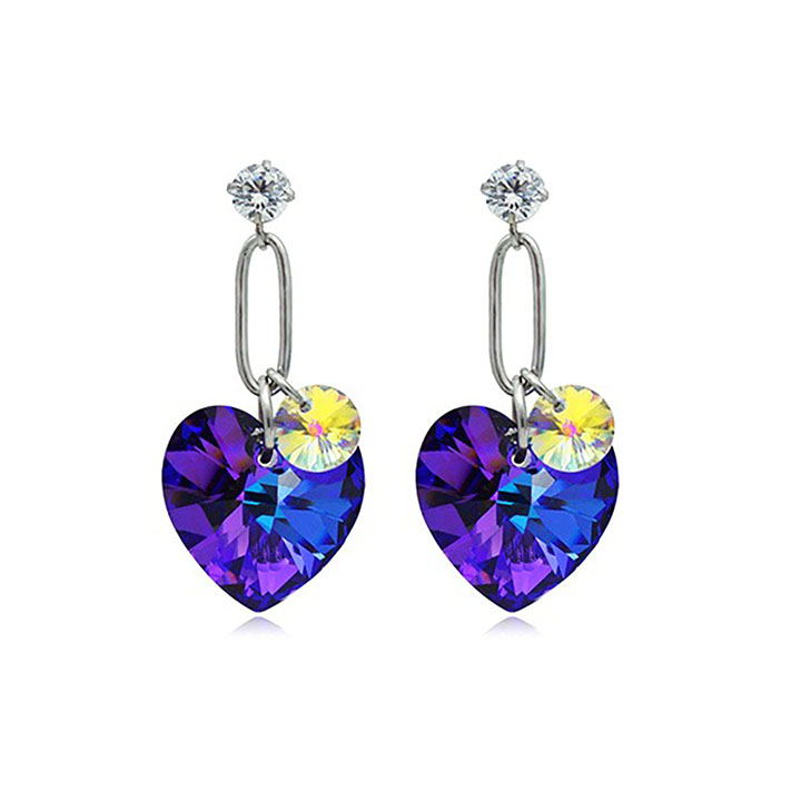 오스트리아 하트 크리스탈 큐빅지르코니아 스테인레스 스틸 포스트 귀걸이-퍼플