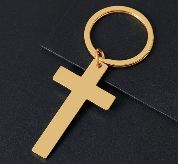 골드 메탈 스테인리스 십자가 자동차 키링 열쇠 고리