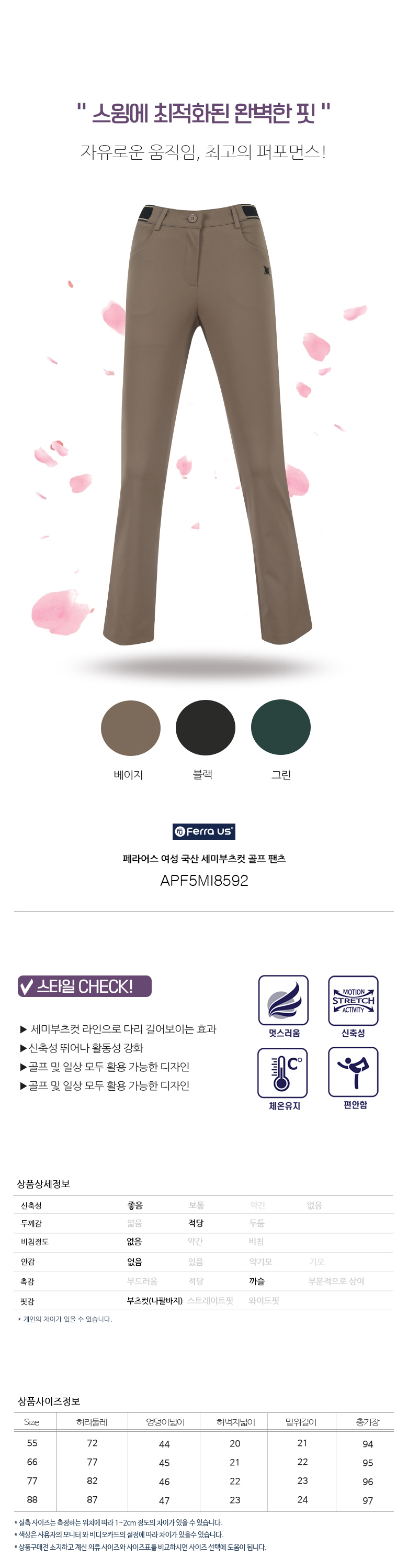 페라어스 여성 국산 세미부츠컷 골프 팬츠 APF5MI8592