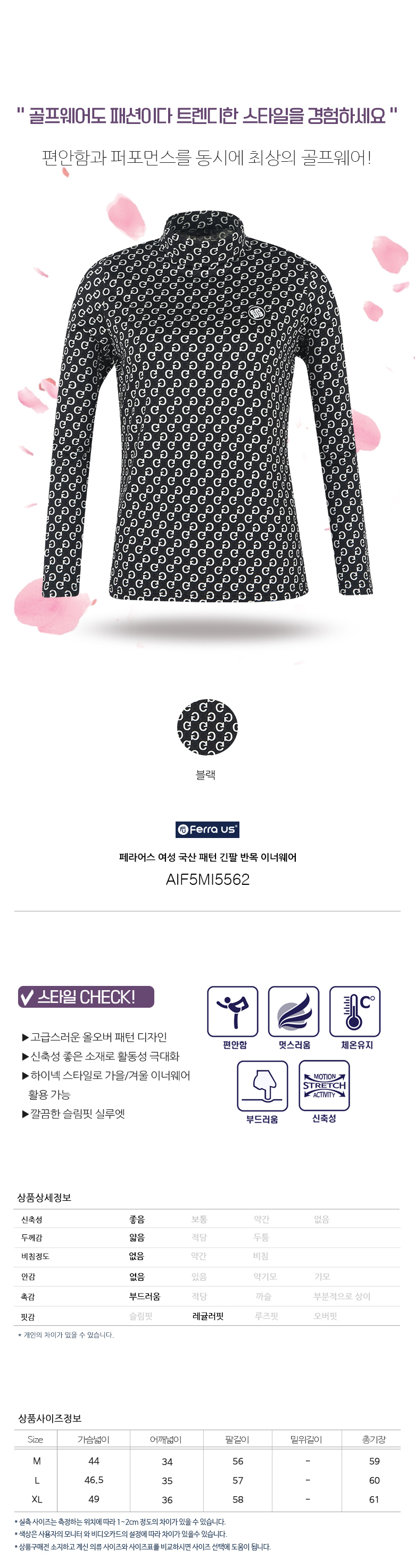 페라어스 여성 국산 패턴 긴팔 반목 이너웨어 AIF5MI5562