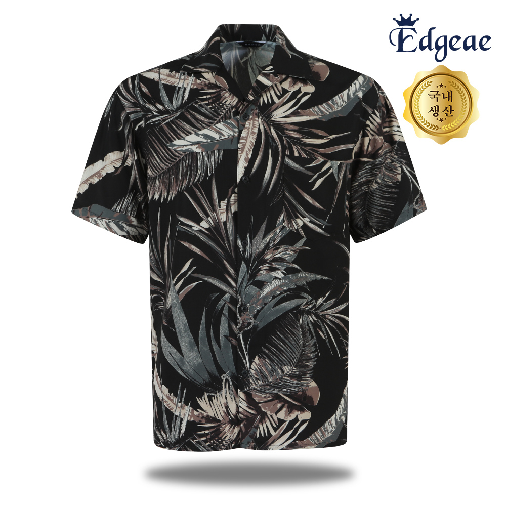 엣지애 남성 여름 열대 나뭇잎 패턴 반팔 셔츠 MCTM5NAD5453