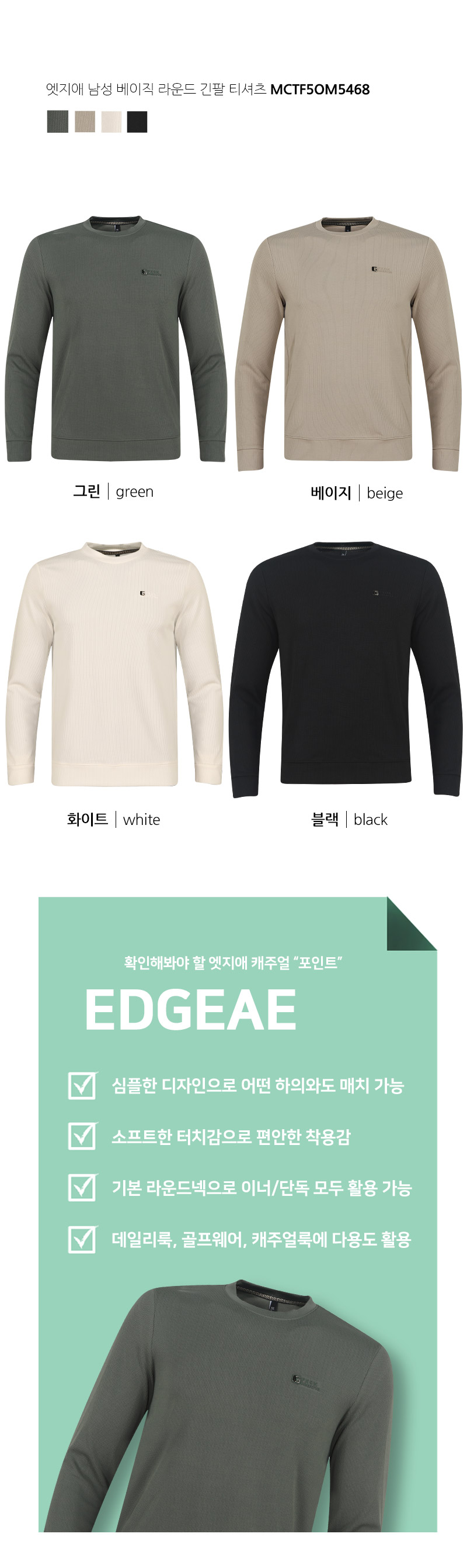 엣지애 남성 베이직 라운드 긴팔 티셔츠 MCTF5OM5468