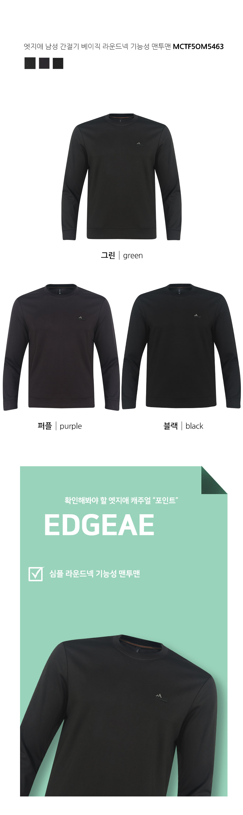 엣지애 남성 간절기 베이직 라운드넥 기능성 맨투맨 MCTF5OM5463