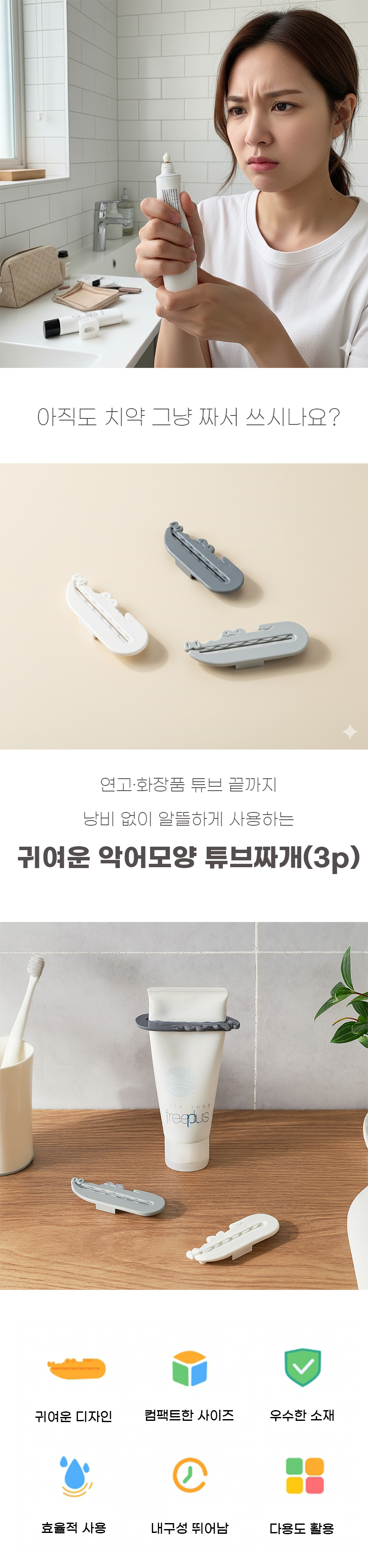 악어모양 튜브홀더 치약짜개 화장품 압출기 생활용품