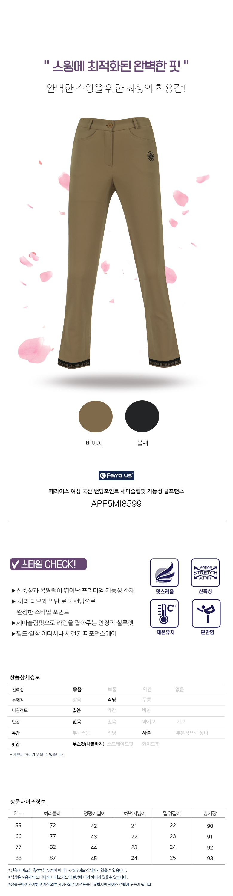 페라어스 여성 국산 밴딩포인트 세미슬림핏 기능성 골프팬츠 APF5MI8599