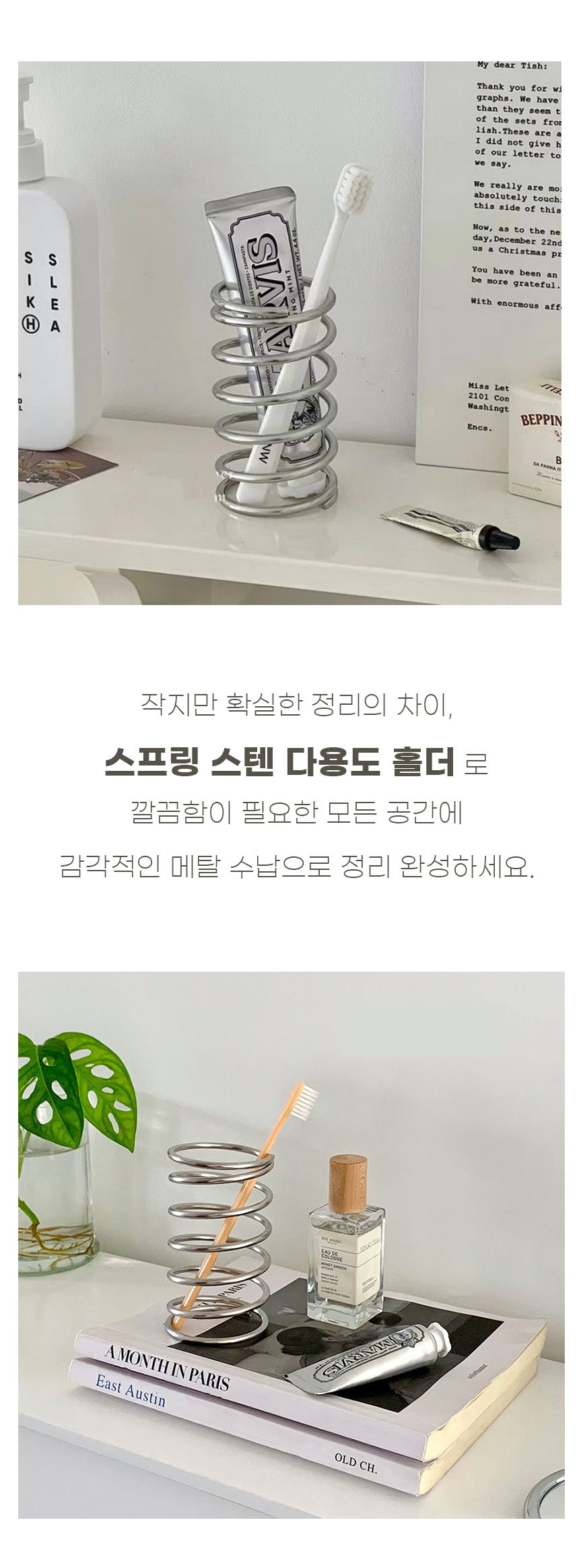 다용도거치 스프링스텐홀더 화장대정리용