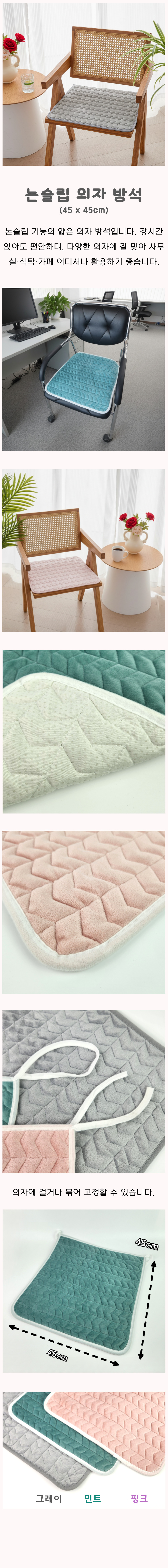얇은 의자 방석 사무실 식탁 논슬립 45x45 사각