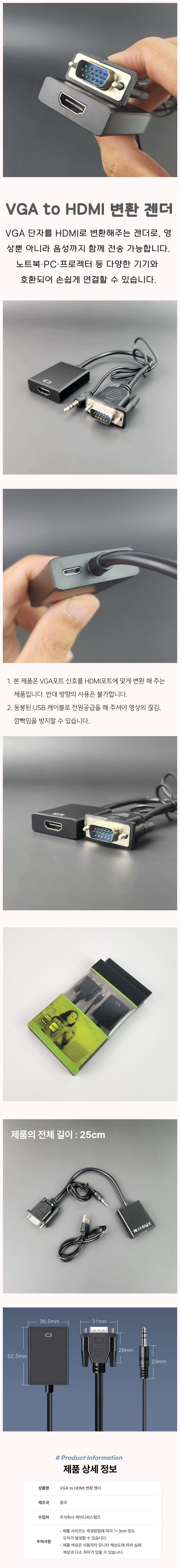 VGA to HDMI 컨버터 젠더 케이블 변환기 오디오